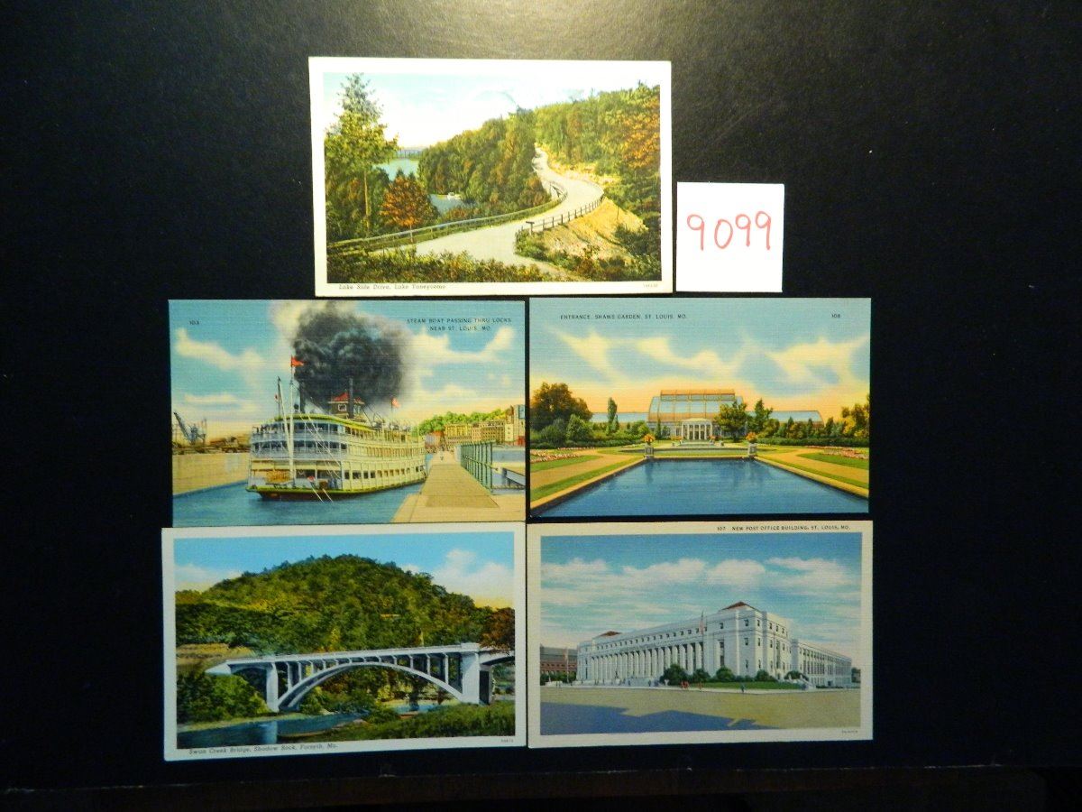 Five Postcards from 1920's and Early 1930's from Missouri, All One Money