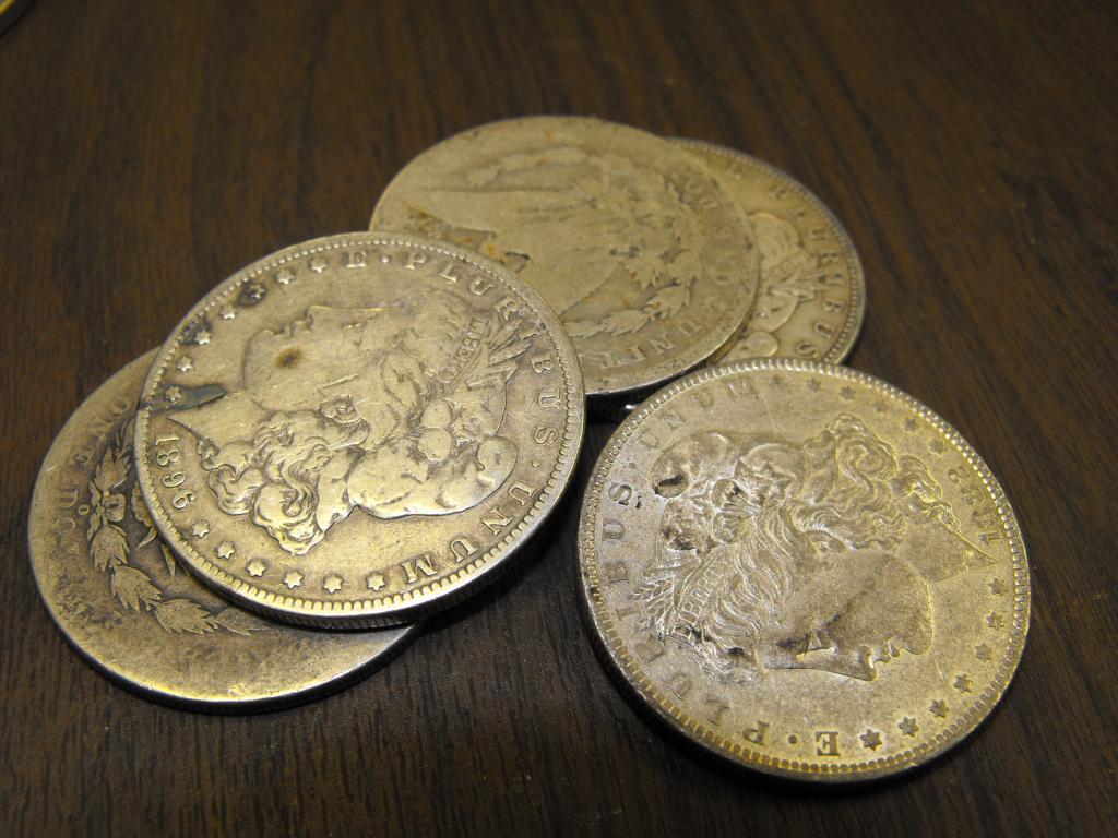 Five Random Date Morgan Silver Dollars