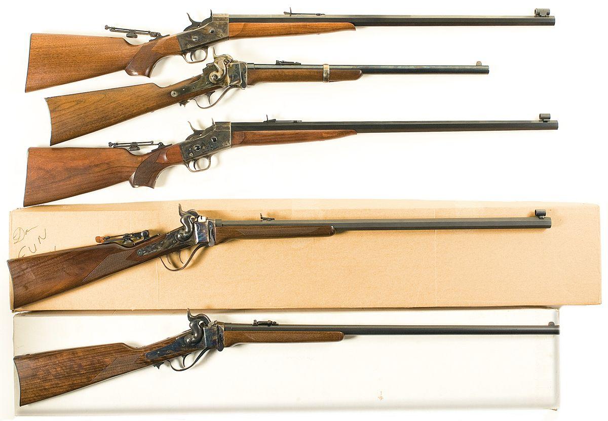 D) Standard markings and features with rear tang peep sight. Complete with factory box numbered to gun.