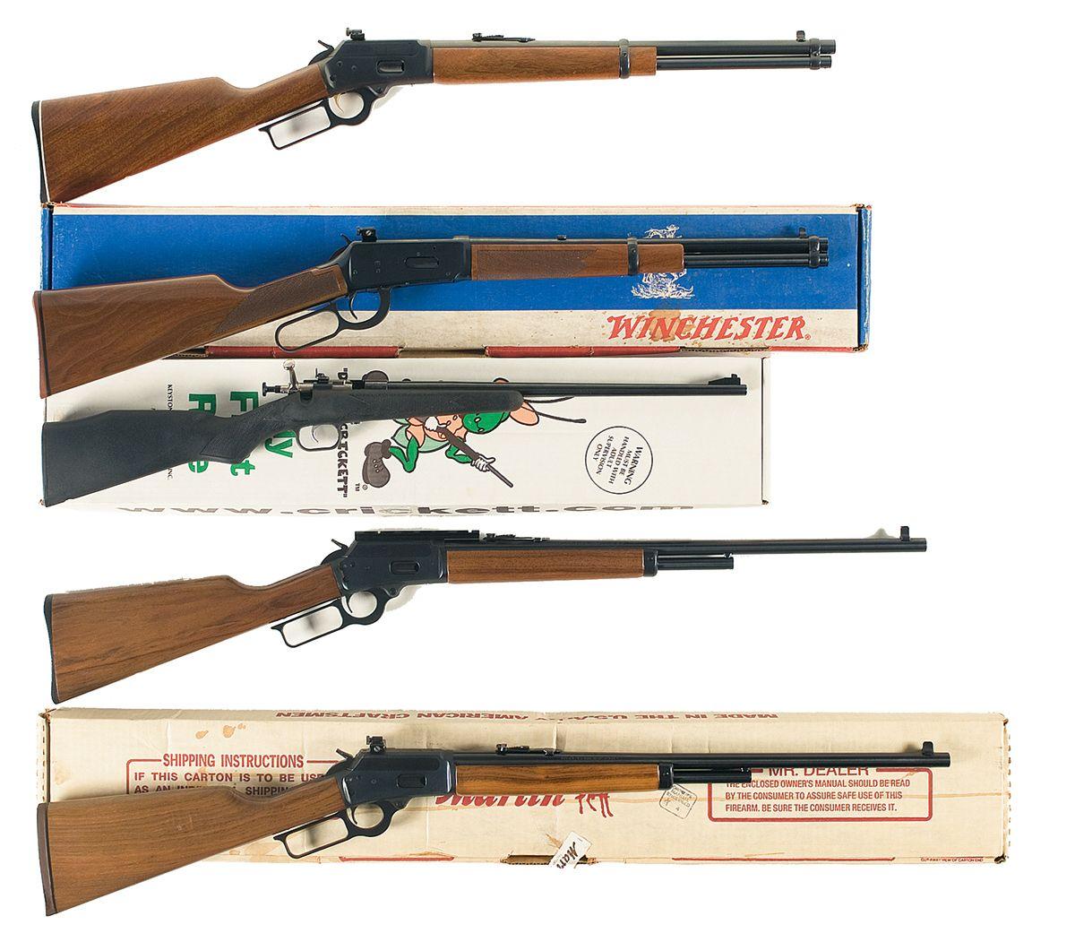 A) Introduced in 1969. Standard markings and features. Complete with gold washed trigger, receiver mounted Williams peep sight and correct Marlin box.