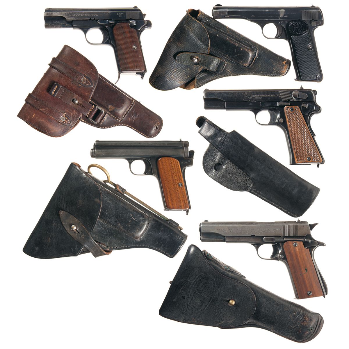 With leather holster and two magazines total.