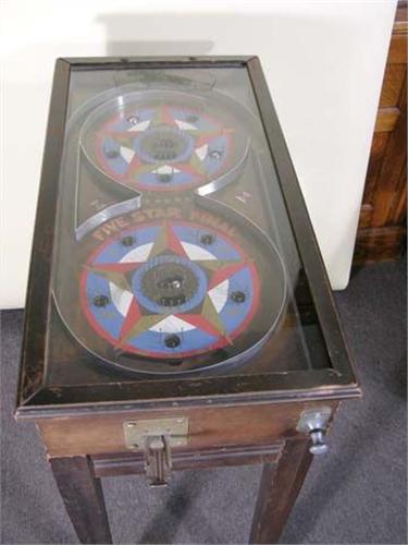 Five Star Final Game - pinball, one half the size of today's pinball machines this early game is in a beautiful wood cabinet. Works.