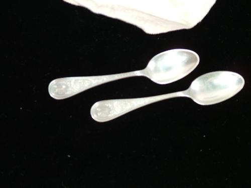 Set of 5 sterling silver spoons (Bat 79), decorated handles monogrammed "V"