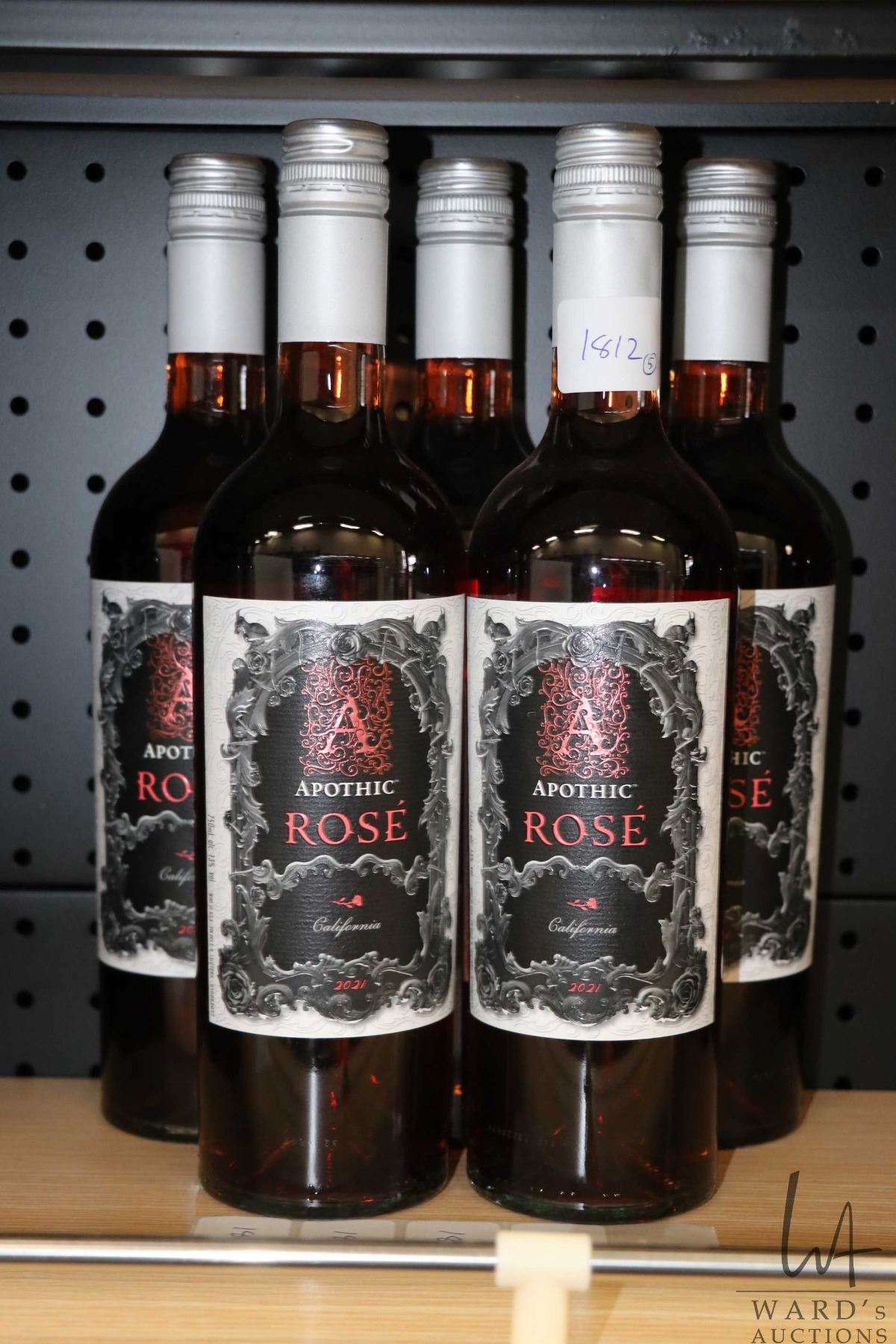 Five bottles of Apothic Rose 2021 750ml Note: Alcohol cannot be insured by any courier in Canada. Local pick up is recommended. Canadian bidders only