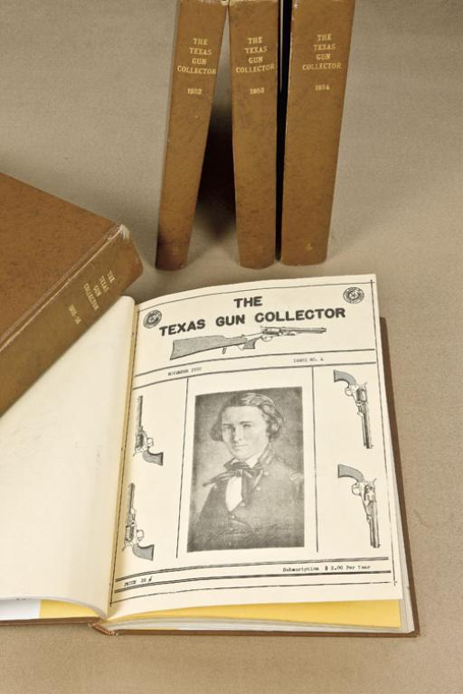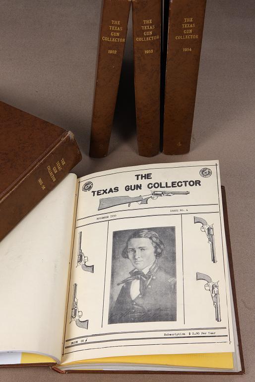 Five bound books containing seven years of original Texas Gun Collector Association Magazines covering the years 1950 thru 1956, all in overall good condition; a wealth of early collecting information and researchprovenance on many important firearms and collectibles. Est.: $100-$200.