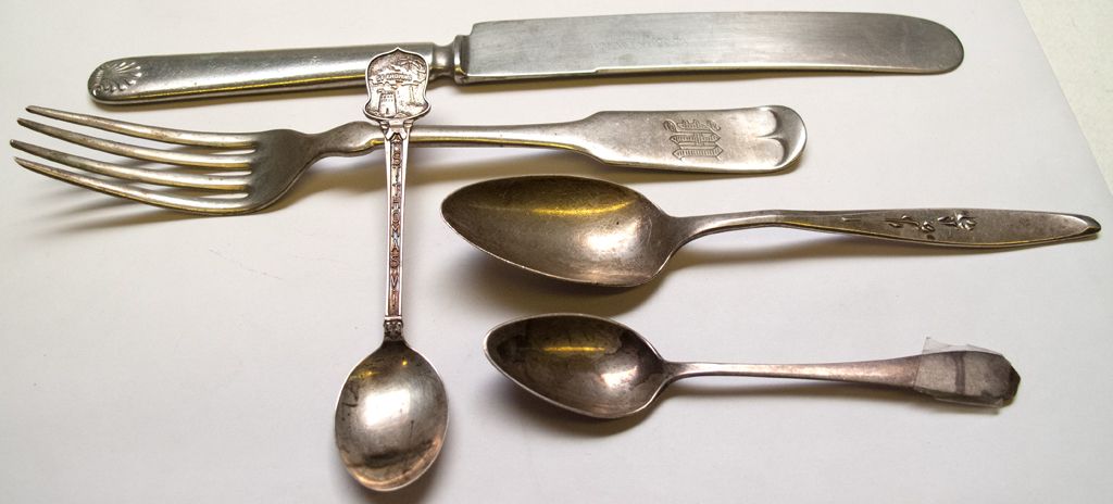 Five pieces of silverware: mostly silver