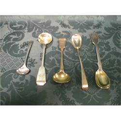 Five silver condiment spoons, Georgian and later, various dates and hallmarks.
