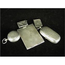 Five silver items: Two stamp cases Two sovereign cases and An aide memoire, all hallmarked Est. 1...