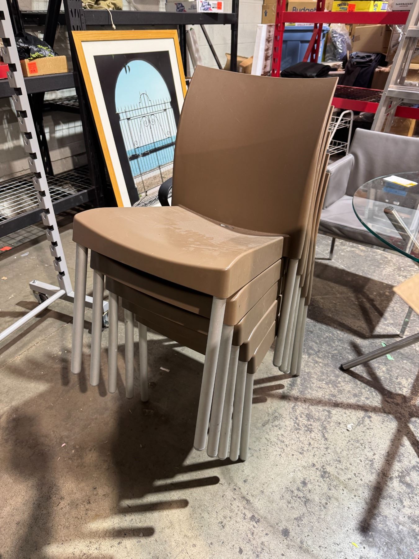 Five stacking chairs