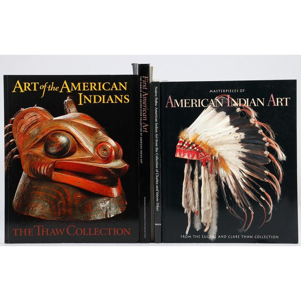 Five volumes on major private collections of Native American art. 1.) BERLO, JANET CATHERINE, et. al. Native Paths: American Indian Art from the Collection of Charles and Valerie Diker. New York: Metropolitan Museum of Art, 1998. 2.) BERNSTEIN, BRUCE, et al. First American Art, the Charles and Valerie Diker Collection of American Indian Art. Washington, D.C. and New York: Smithsonian National Museum of the American Indian, 2004. 3.) FOGNELL, EVA. Art of the American Indians, the Thaw Collection. New York: Fenimore Art Museum, 2010. 4.) GOODYEAR, FRANK H., JR., et al. The Collecting Passions of Dennis and Janis Lyon. Phoenix: Heard Museum, 2004. 5.) VINCENT, GILBERT T. Masterpieces of American Indian Art, from the Eugene and Clare Thaw Collection. New York: Harry N. Abrams, 1995. Condition: Good-Very Good; these volumes are from a well-used research library; some light toning; some with owner's signature.