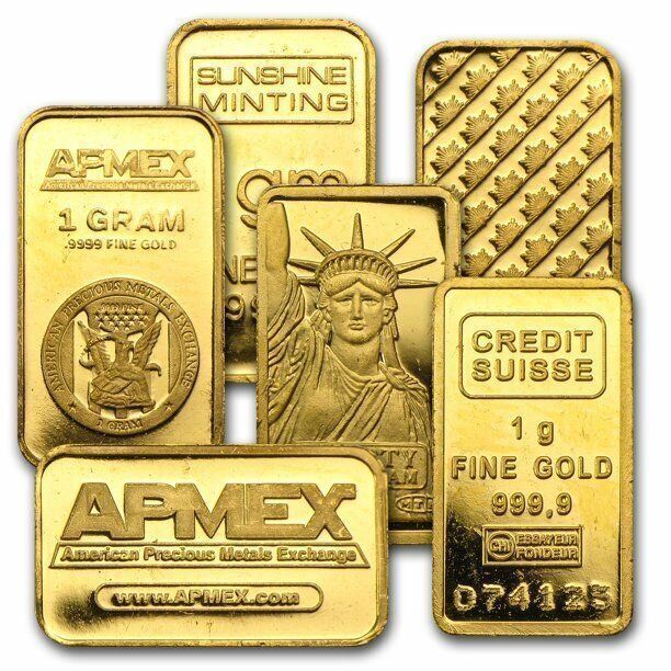 Five1 Gram Fine Gold Bar s- Assayed .9999 Pure Fine Bullion - Random Mint/Make 5 Grams Total