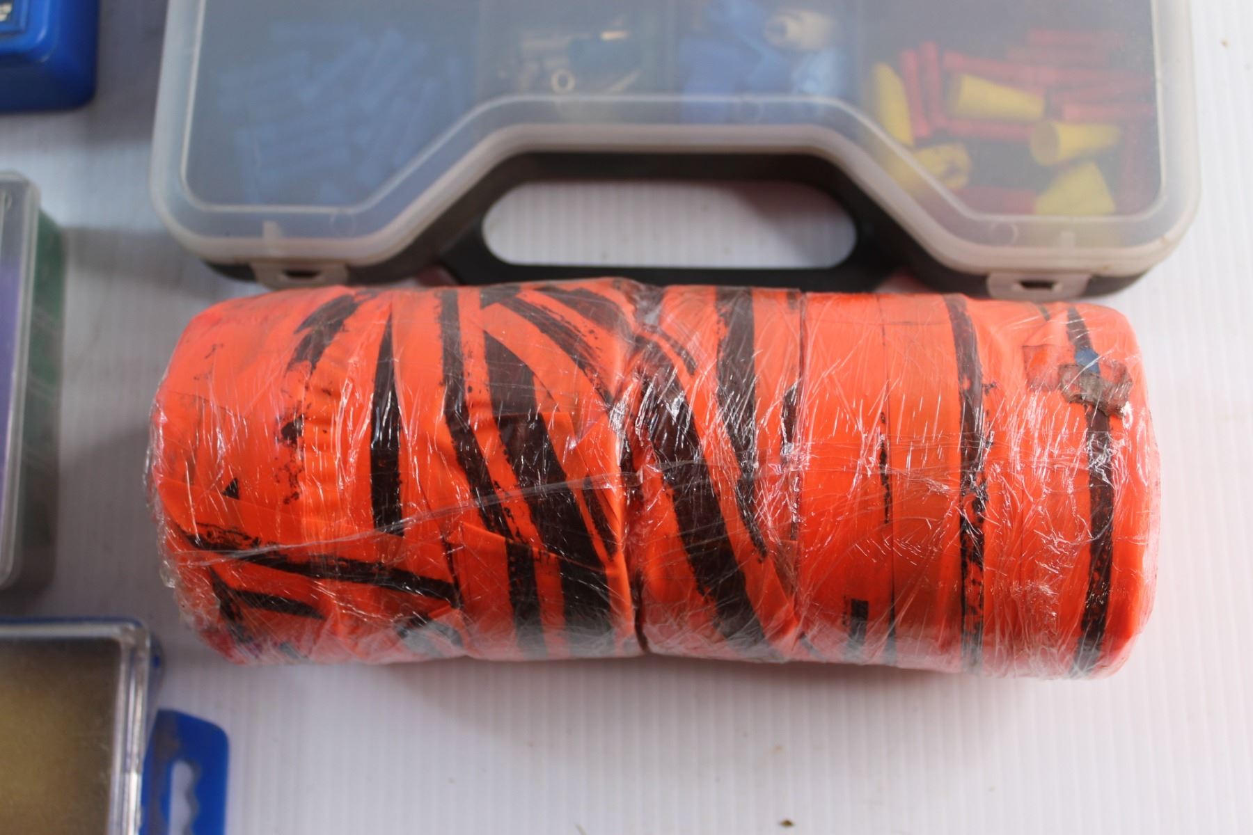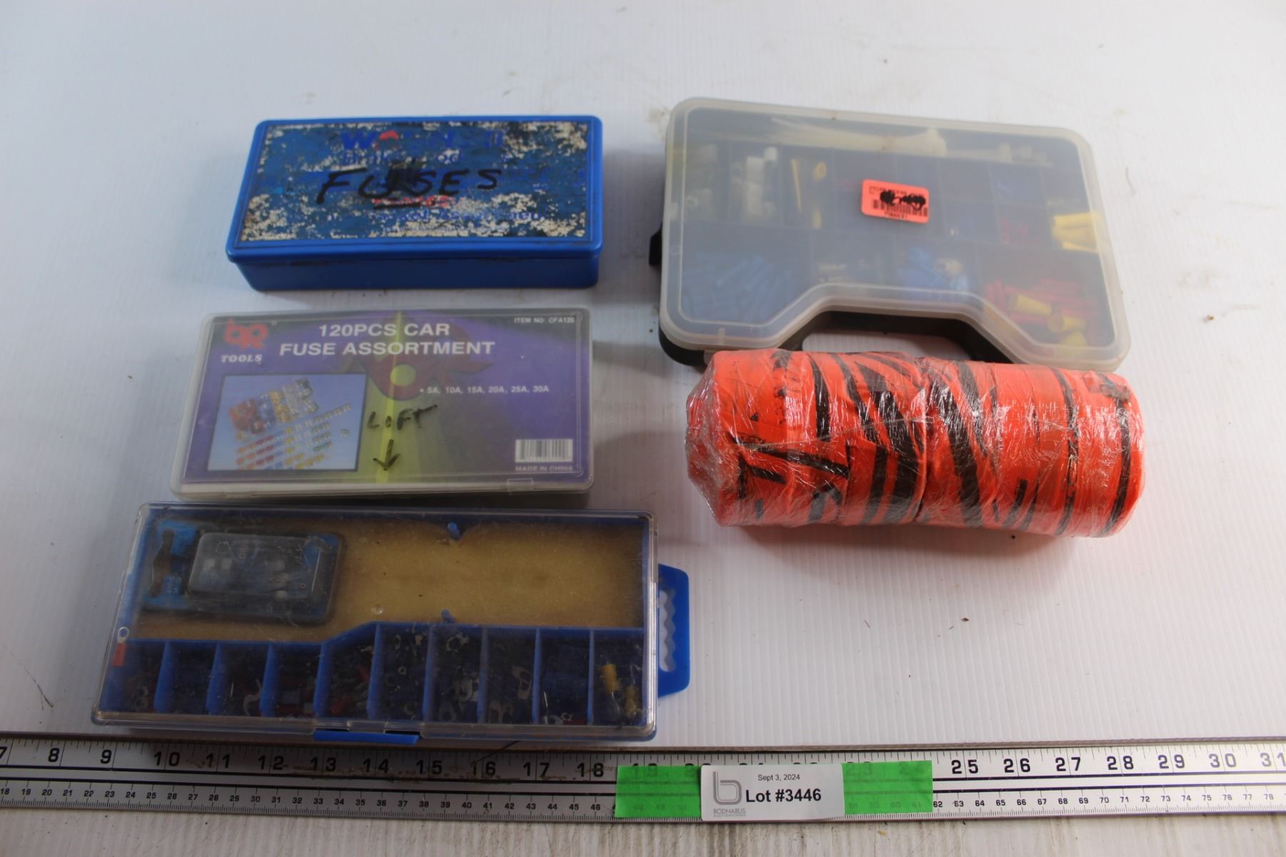 Flagging Tape, (120+) Assorted Car Fuses and Assorted Electrical Supplies