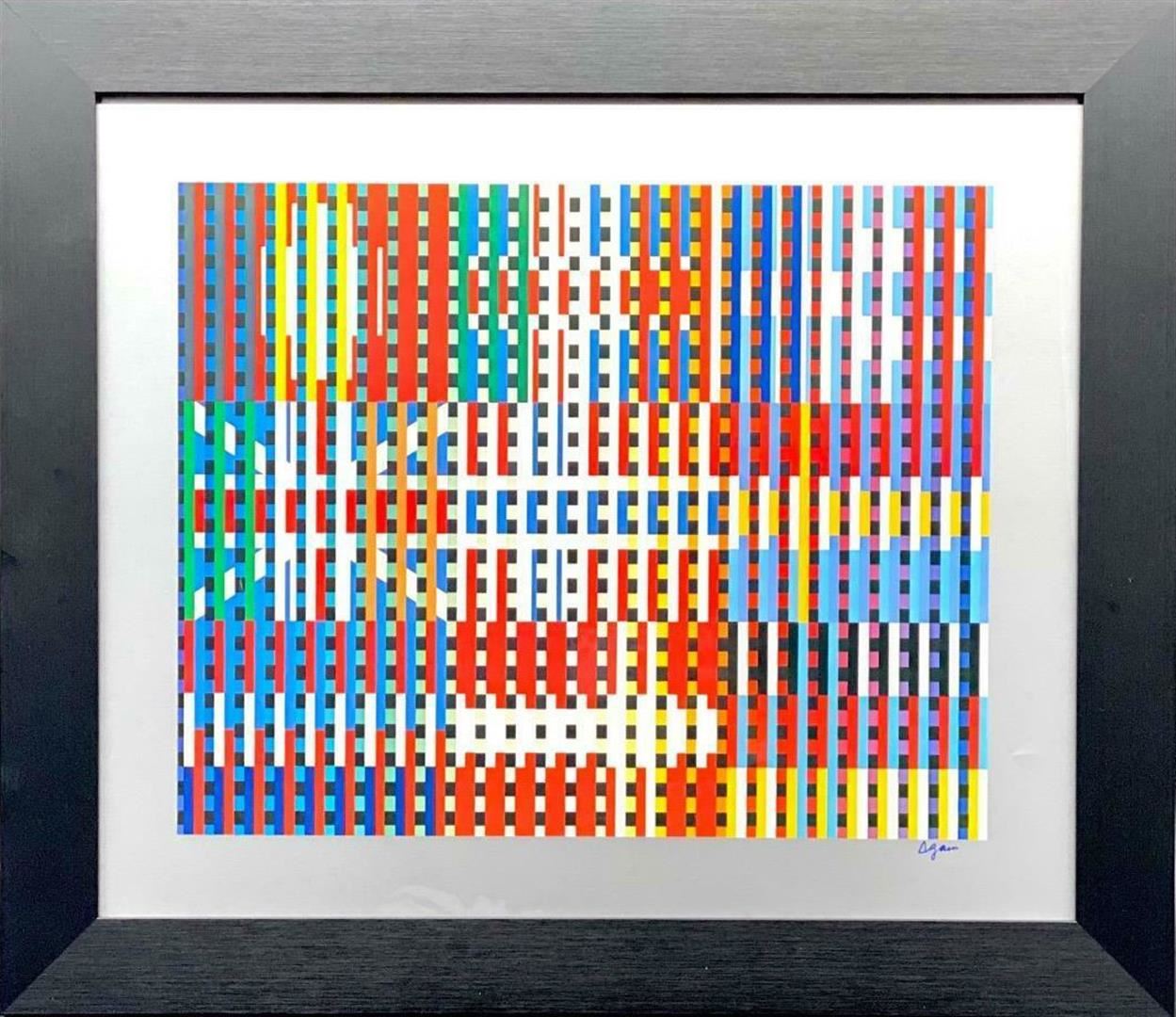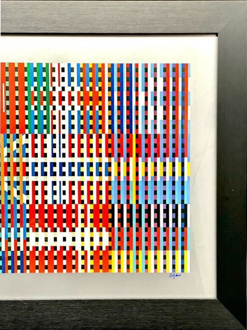 Flags of All Nations - Custom Framed by Agam, Yaacov. Open Plate Signed Serigraph on Paper Framed. Dimensions: 16.5 x 19.5. Excellent Condition.