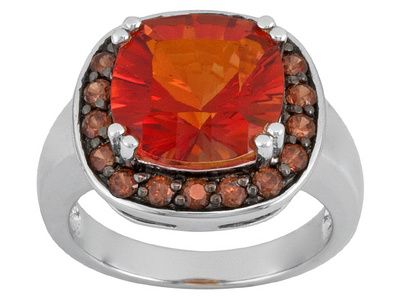 Flame Feldspar 4.70ct With .90ctw Imperial Zircon Sterling Silver Ring NJH386