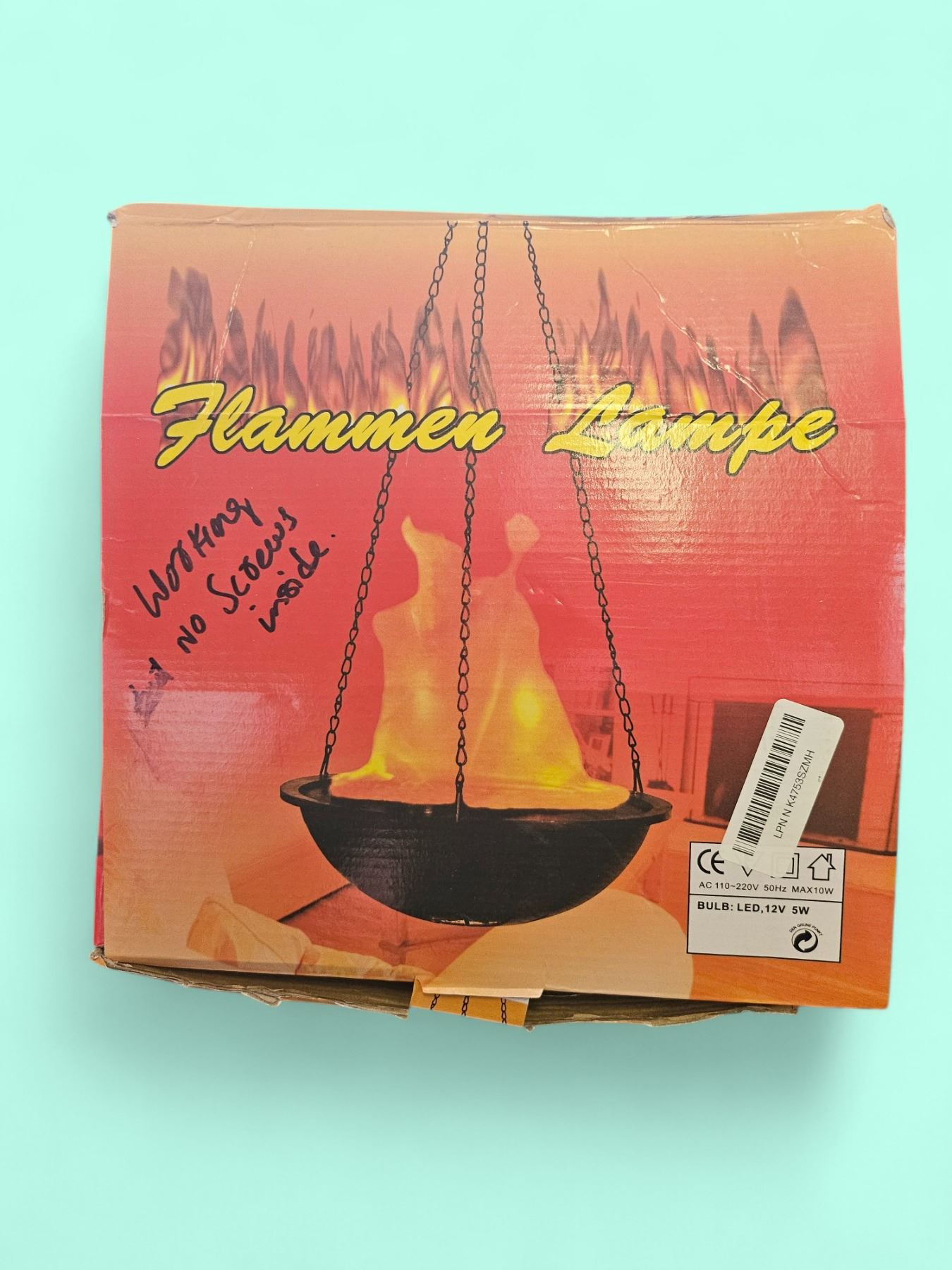 LED flame effect lamp. missing a few screws meant for adding legs sonit can be on a table.