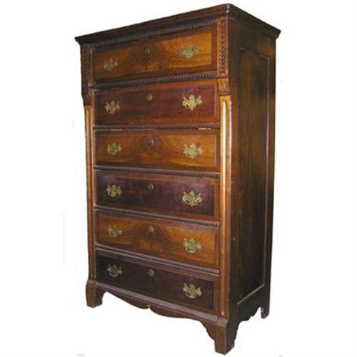 </font></strong>This tall chest of drawers dates from the late 19th or early 20th century and is in excellent condition. Measures 55" tall, 35" wide and 19.5" deep. Drawer fronts feature matching flame mahogany veneers. This item resides on the upper east side of Manhattan ( New York city ) and may be seen by appointment.
