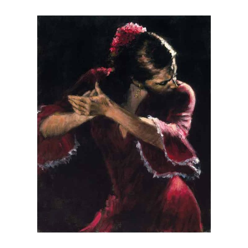 "Flamenco V" is a hand embellished limited edition giclee on stretched canvas by Fabian Perez. The piece is numbered and hand signed by the artist and comes with a Certificate of Authenticity. Measures approx. 25" x 20" (image). Please allow 5 additional business for items that include canvas stretch or framing.