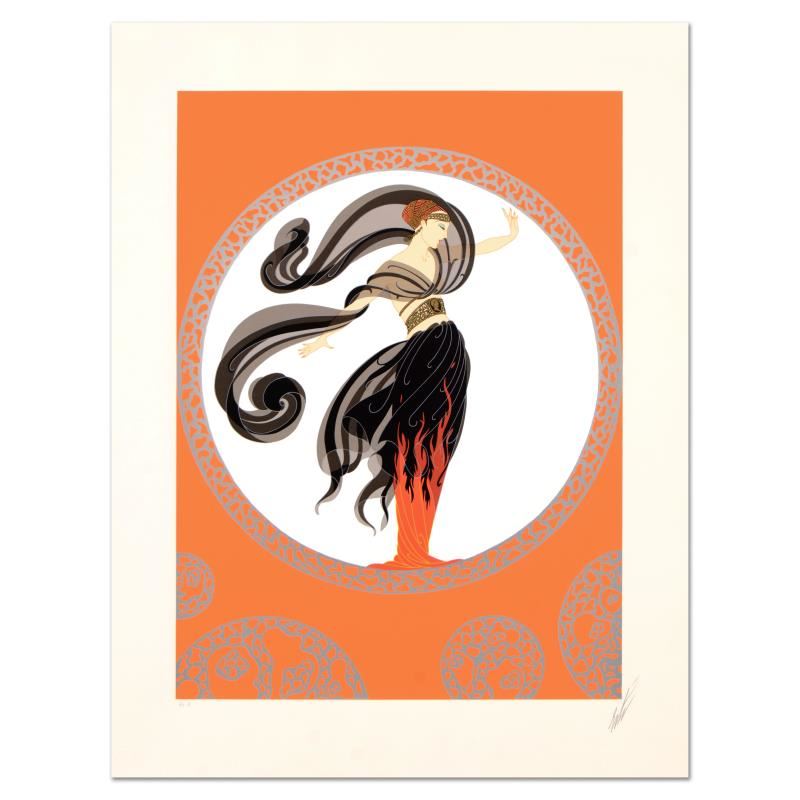 "Flames of Love" is a limited edition serigraph on paper from an AP edition by Erte (1892-1990), hand signed by the artist. Includes Certificate of Authenticity. Measures approx. 21" x 27" (with border), 16" x 21.5" (image).