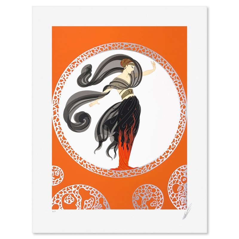 "Flames of Love" is a limited edition serigraph from an AP edition on paper by Erte (1892-1990), hand signed by the artist. Includes Letter of Authenticity. Measures approx. 26" x 21" (border), 20" x 15" (image).