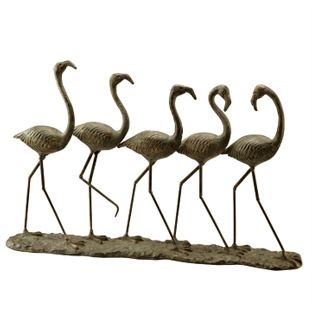 Flamingo Parade Sculpture - 12"H 19"W 3.5"D - Cast Iron