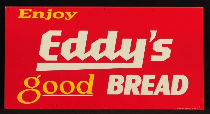 Flanged "Eddy's Good Bread" Tin Advertising, Measures 29" x 15"