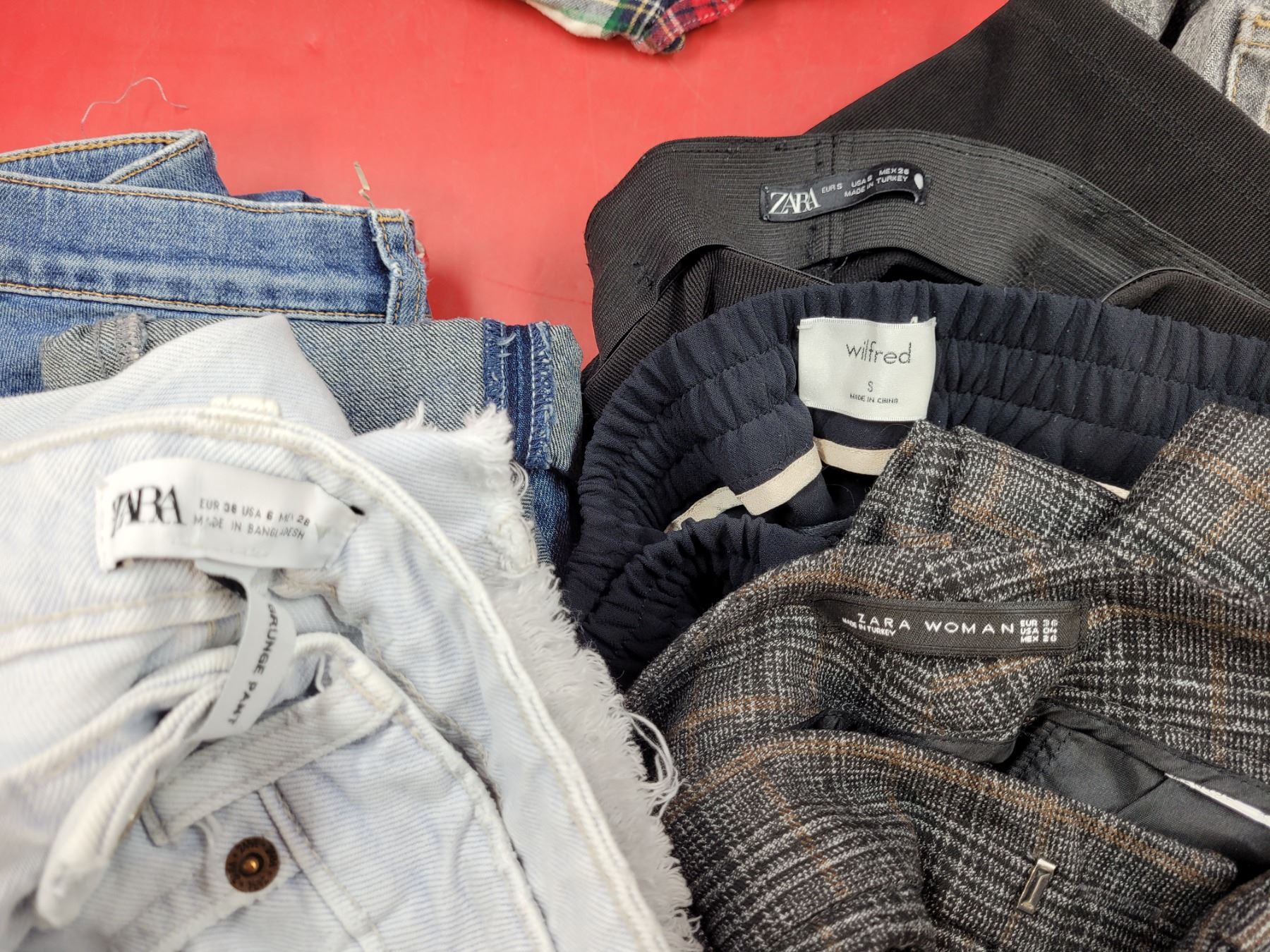 Wilfred pants are size S, Zara pants are size 38, 36, & S