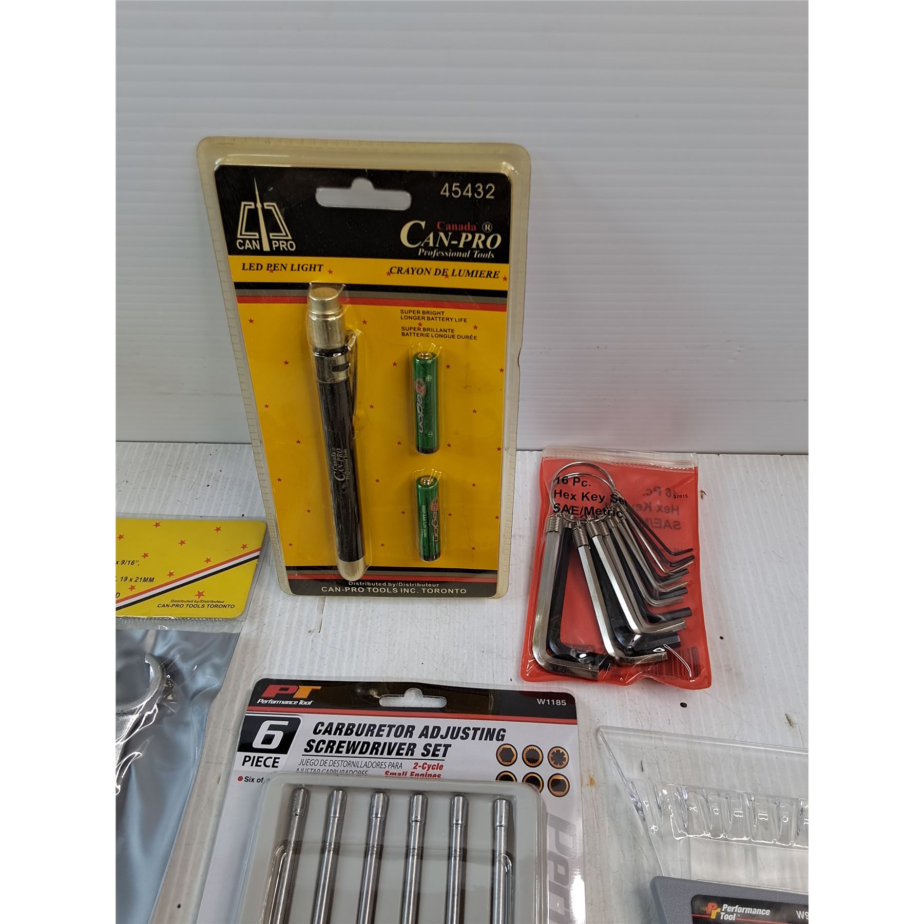 Flare Nut Wrench, 4" Extension, Ratchet Wrench, LED Pen Light, Hex Key Set, Misc
