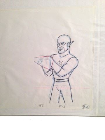 "Flash" Animation Cel (featuring the "Flash" / includes original hand drawn character sketch / 1967 / Filmation Studios / 12" x 9")