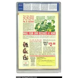 Flash Comics #1 (DC, 1940) CGC FN- 5.5 Cream to off-white pages. One of the classic DC keys, this introductory issue features the first appearance of Hawkman, Hawkgirl (as Shiera Sanders), and the legendary Flash. The series would run 104 issues, enjoying success throughout the '40s and proving itself as one of DC's mainstays. Shelly Moldoff, Hawkman's preeminent artist, was assigned the cover, creating a classic image that has only grown in fandom's conscience. Overstreet ranks this issue as the eighth most valuable Golden Age comic, a position that has been earned through years of meteoric jumps in price and demand. This copy is unrestored with very nice pages and most of its wear limited to the spine area. There is a 2 1/4" tear on the right side of the front cover, but because of minimal color loss, does not mar the appearance of the book. No doubt this book would have graded much higher if not for the tear. Thirty interior pages and the inside back cover have a date stamp on them. A truly magnificent book, Flash #1 is capable of turning the heads of even the most jaded collectors. Overstreet FN 6.0 value = $18,000. Important notice: Heritage usually auctions material at the rate of 200-250 lots per hour. On some occasions eBay Live bid software or the Internet may not be able to keep up with the pace of the auction. We recommend placing a realistic absentee bid now as insurance to avoid disappointment. Occasionally the auctioneer may eliminate or reject an eBay Live bid, and the auctioneer may also reopen a lot after the close of the eBay live bidding (usually because we missed an audience bid), and may reject your bid even if it shows you as the winning bidder. By bidding via eBay Live, you agree that Heritage may award the lot to another bidder at its sole discretion under the circumstances described above or any other reasonable circumstances. Also please note that all Heritage lots purchased through eBay Live carry a 20% Buyer's Premium. Please make sure you read the Terms and Conditions before you bid.