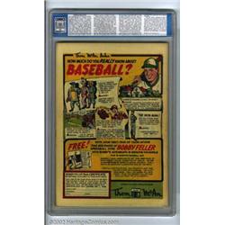 Flash Comics #101 (DC, 1948). A great Infantino Flash cover, showing our hero smashing through the time clock as he travels into the future! A terrific copy with a 1/4" tear on the back cover only, certainly looking better than the grade given. Listed as "scarce" in Overstreet. CGC FN/VF 7.0 Tan to off-white pages. Overstreet 2001 FN 6.0 value = $726; NM 9.4 value = $2,300. Important notice: We expect to be auctioning lots at the rate of 200-250 per hour. Sometimes eBay Premier live bid software cannot keep up with that pace, so we strongly recommend that you place a realistic proxy bid now as insurance to avoid disappointment. Also please note that all Heritage/CAA lots purchased through eBay Premier carry a 20% Buyer's Premium.