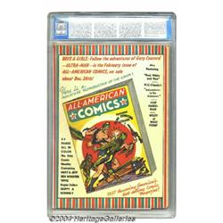 <B>Flash Comics #2 (DC, 1940) CGC VF- 7.5 (Page quality not mentioned by CGC).</B></I> This book has received the highest grade yet assigned by CGC for this issue. This seldom-seen book is a key issue not only for fans of the titular speedster, but also for Hawkman collectors, as this is the winged one's first-ever cover appearance (drawn by Sheldon Moldoff). Overstreet 2004 VF 8.0 value = $5,068. <BR><BR><B>Important notice:</B> Heritage usually auctions material at the rate of 200-250 lots per hour. On some occasions eBay Live bid software or the Internet may not be able to keep up with the pace of the auction. We recommend placing a realistic absentee bid now as insurance to avoid disappointment. Occasionally the auctioneer may eliminate or reject an eBay Live bid, and the auctioneer may also reopen a lot after the close of the eBay live bidding (usually because we missed an audience bid), and may reject your bid even if it shows you as the winning bidder. By bidding via eBay Live, you agree that Heritage may award the lot to another bidder at its sole discretion under the circumstances described above or any other reasonable circumstances. Since eBay bids are not shown to us until we open the lot on the floor, we treat those bids just like floor bids. In most cases the floor responds before the eBay bid is presented to us, due to Internet lag time, so for consistency we have made it a policy that floor bids are always considered first over tie eBay live bids. Also please note that all Heritage lots purchased through eBay Live carry a 20% Buyer's Premium. Please make sure you read the Terms and Conditions before you bid.