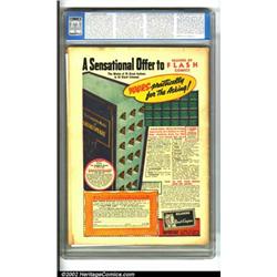 Flash Comics #4 (DC, 1940). A very early issue of this beloved superhero title, this issue features not only a Flash story by Gardner Fox and Harry Lampert, but a Sheldon Moldoff Hawkman story (his first), plus Cliff Cornwall, Johnny Lightning, Rod Rian of the Sky Patrol, and the Whip, which is the cover feature. This is a very solid mid-grade copy with the overall wear associated with its grade, but still retaining a very crisp and attractive appearance. CGC notes, "moderate piece out of the edge of 14th page, does not affect story." CGC FN+ 6.5 Cream to off-white pages. Overstreet 2001 FN 6.0 value = $1,230. Important notice: We expect to be auctioning lots at the rate of 200-250 per hour. Sometimes eBay Premier live bid software cannot keep up with that pace, so we strongly recommend that you place a realistic proxy bid now as insurance to avoid disappointment. Also please note that all Heritage/CAA lots purchased through eBay Premier carry a 20% Buyer's Premium.
