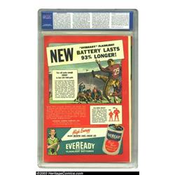 Flash Comics #80 (DC, 1947) CGC NM 9.4 Off-white to white pages. In this Golden Age issue of Flash Comics, Atom begins, and will continue on in the series until issue #104. A truly great-looking book, there is only a small imperfection on the top of the back cover that keeps it from grading higher. This copy has a perfect spine, deep bright colors, and fantastic page quality. Overstreet 2003 NM 9.4 value = $875. Important notice: Heritage usually auctions material at the rate of 200-250 lots per hour. On some occasions eBay Live bid software or the Internet may not be able to keep up with the pace of the auction. We recommend placing a realistic absentee bid now as insurance to avoid disappointment. Occasionally the auctioneer may eliminate or reject an eBay Live bid, and the auctioneer may also reopen a lot after the close of the eBay live bidding (usually because we missed an audience bid), and may reject your bid even if it shows you as the winning bidder. By bidding via eBay Live, you agree that Heritage may award the lot to another bidder at its sole discretion under the circumstances described above or any other reasonable circumstances. Also please note that all Heritage lots purchased through eBay Live carry a 20% Buyer's Premium. Please make sure you read the Terms and Conditions before you bid.