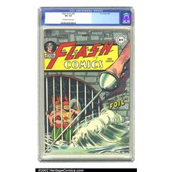 Flash Comics #87 (DC, 1947) CGC VF+ 8.5 Off-white to white pages. Everett Kinstler makes the most of his one cover assignment for this title with a symbolic Hawkman cover. The Foil is introduced in this issue. This copy currently ranks as the nicest CGC has certified to date of issue #87, the only one, in fact, to score as high as Very Fine. Overstreet 2002 VF 8.0 value = $713. Important notice: We expect to be auctioning lots at the rate of 200-250 per hour. Sometimes eBay Premier live bid software cannot keep up with that pace, so we strongly recommend that you place a realistic proxy bid now as insurance to avoid disappointment. Also please note that all Heritage/CAA lots purchased through eBay Premier carry a 20% Buyer's Premium. Please make sure you read the Terms and Conditions.