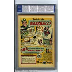 Flash Comics #97 (DC, 1948). Heritage is proud to present a truly scarce run of Flash Comics #97-103 in mid-to high-grade, something that does not surface on the market often. Because the series was nearing cancellation due to a decline in superhero sales, the quantities printed were considerably lower than earlier issues. Also considering how popular Flash is, one can appreciate how hard it is to find copies in such nice, unrestored condition. The books presented here for auction come from one collection (except for #98), further adding value because of their conforming grades. This copy, the first offering from this stunning group, appears VF/NM, but was downgraded because of a small chip out of the spine area. The corners are razor sharp, with no blemishes on the cover to speak of. Each of these Flash issues are a sight to behold. CGC FN- 5.5 Dark-tan to off-white pages. Overstreet 2001 FN 6.0 value = $387.  Important notice: We expect to be auctioning lots at the rate of 200-250 per hour. Sometimes eBay Premier live bid software cannot keep up with that pace, so we strongly recommend that you place a realistic proxy bid now as insurance to avoid disappointment. Also please note that all Heritage/CAA lots purchased through eBay Premier carry a 20% Buyer's Premium.