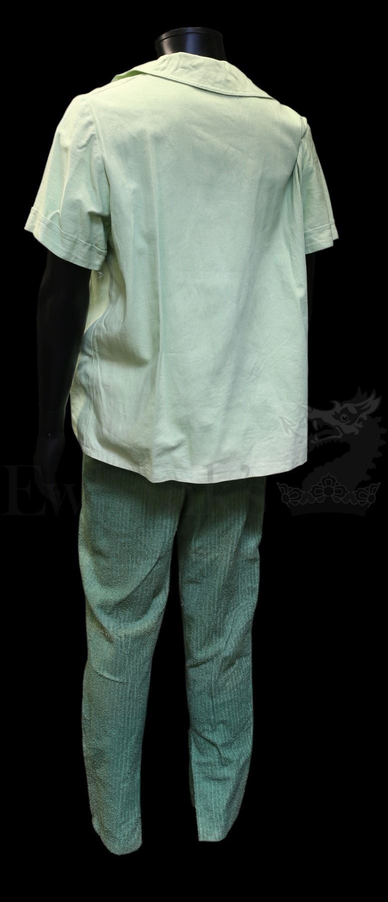 † Flash Gordon(1980) Aboria Treeman Costume. Comprising of a short sleeved shirt with a pair of trousers. The Trousers feature internal elasticated braces and are purposely short in length for their use with the boots that were worn by the Treeman. Please note that VAT is payable on top of the hammer price at 20% in addition to standard buyers premium inc. VAT for this lot.