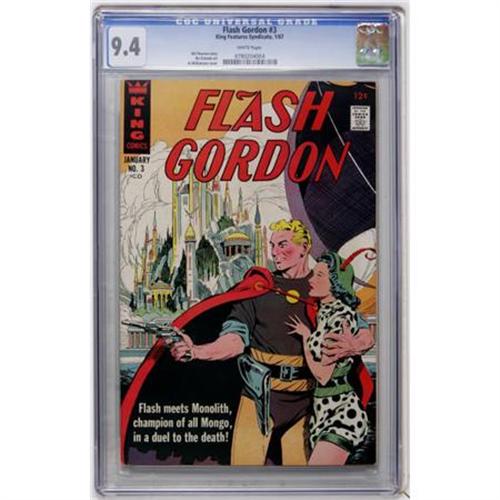 <B>Flash Gordon #3 (King Features Syndicate, 1967) CGC NM 9.4 White pages.</B></I> Al Williamson cover. Overstreet 2007 NM- 9.2 value = $50. CGC census 9/07: 1 in 9.4, 2 higher. <I> From the Fantastic Frank Collection.</B></I><BR><BR><b>Shipping:</b> Comics - Slabbed (certified) (<a target="_blank" href="http://www.heritageauctions.com/common/shipping.php">view shipping information</a>)