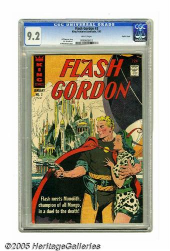 <B>Flash Gordon #3 Pacific Coast pedigree (King Features Syndicate, 1967) CGC NM- 9.2 White pages.</B></I> A beautiful Al Williamson cover graces this issue, which features interior art by Ric Estrada and a Bill Pearson story. Overstreet 2005 NM- 9.2 value = $45. CGC census 6/05: 1 in 9.2, 2 higher.