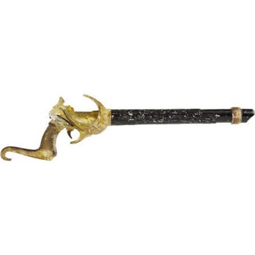 <B>"Flash Gordon" Prop Ray Gun.</B></I> A prop ray gun from the 1980 cult classic Dino De Laurentiis movie, crafted from a single piece of molded resin, painted black and gold and measuring 30" in length. It is in Fine condition with heavy wear and paint loss, as well as a crack in the handle. <I> Accompanied by COA from L.A. Prop and Wardrobe Co.</B></I><BR><BR><b>Shipping:</b> Clothing, Costumes & Jerseys (<a target="_blank" href="http://www.heritageauctions.com/common/shipping.php">view shipping information</a>)