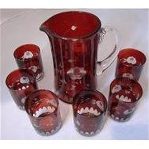 <tr><td>Title:Flashed Ruby Bohemian Pitcher & Tumblers</td></tr>