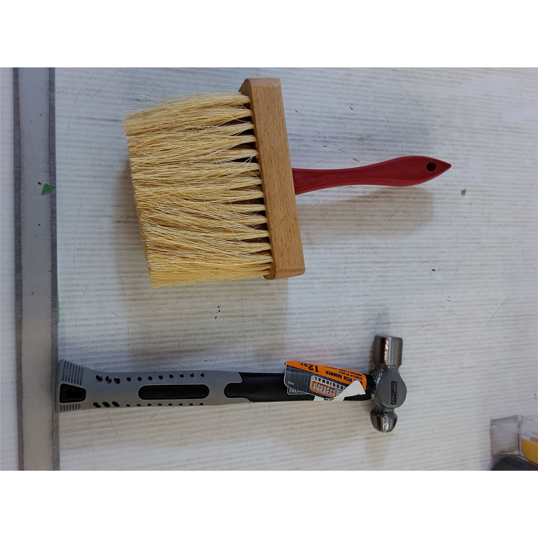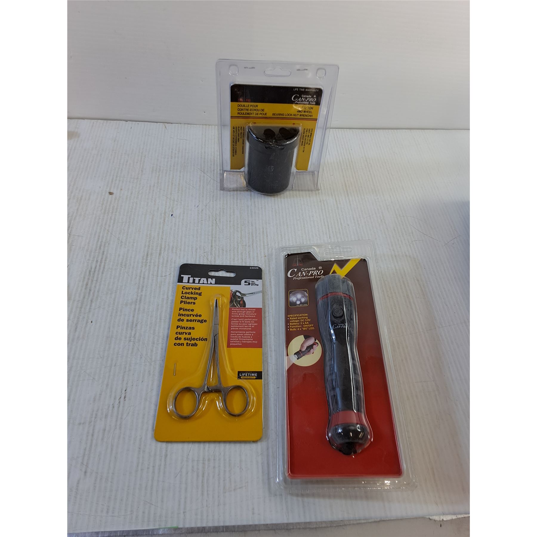 Flashlight, Utility Brush, Curved Locking Clamp Pliers, Hammer, 1/2 Ton Bearing Lock-Nut Wrench