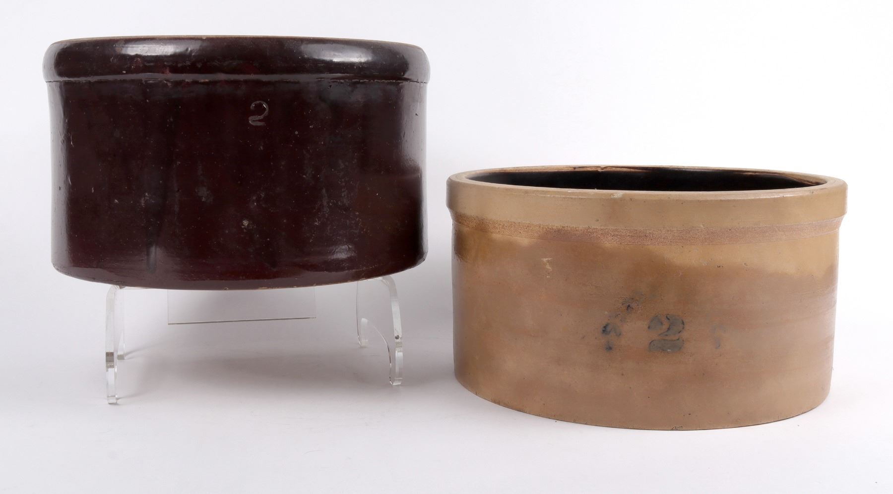 2 2 gallon flat bottom pots. Tan 6x11", brown 6.5x11.25". No apparent chips or cracks.