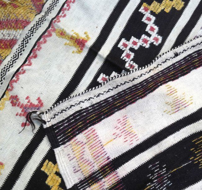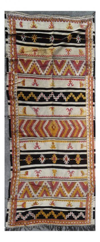 Flat weave rug runner. [56" x 128"]. Stains, soiling.