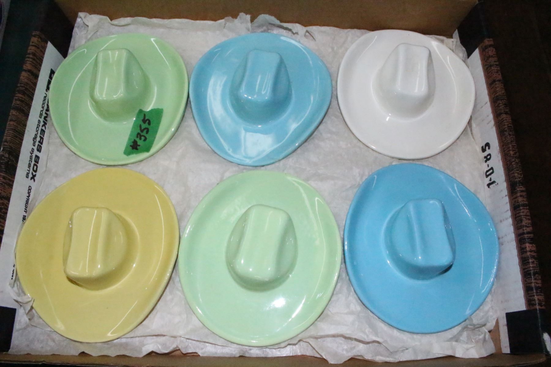 Flat of 6 Pottery Stetson Hat Ashtrays - Made in Medicine Hat, Ab.