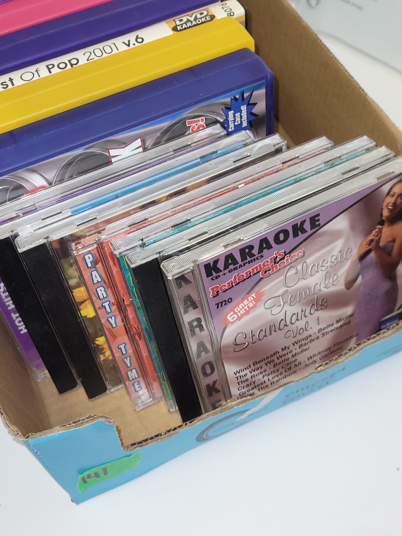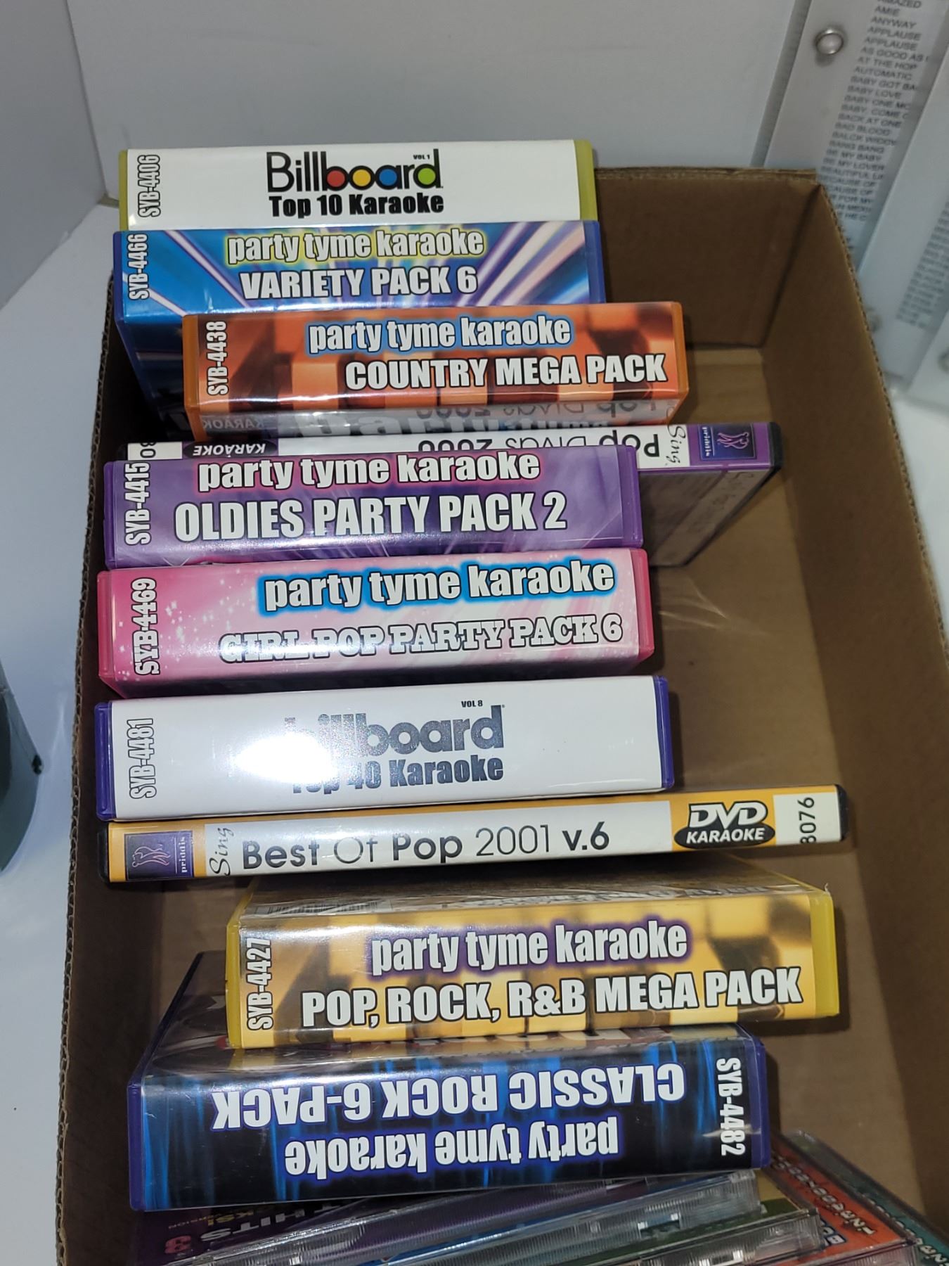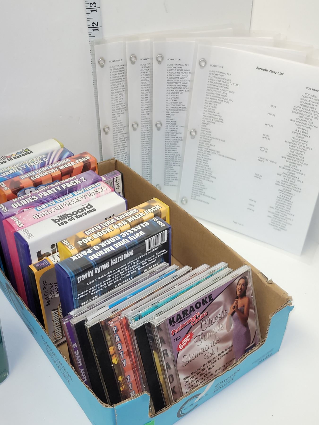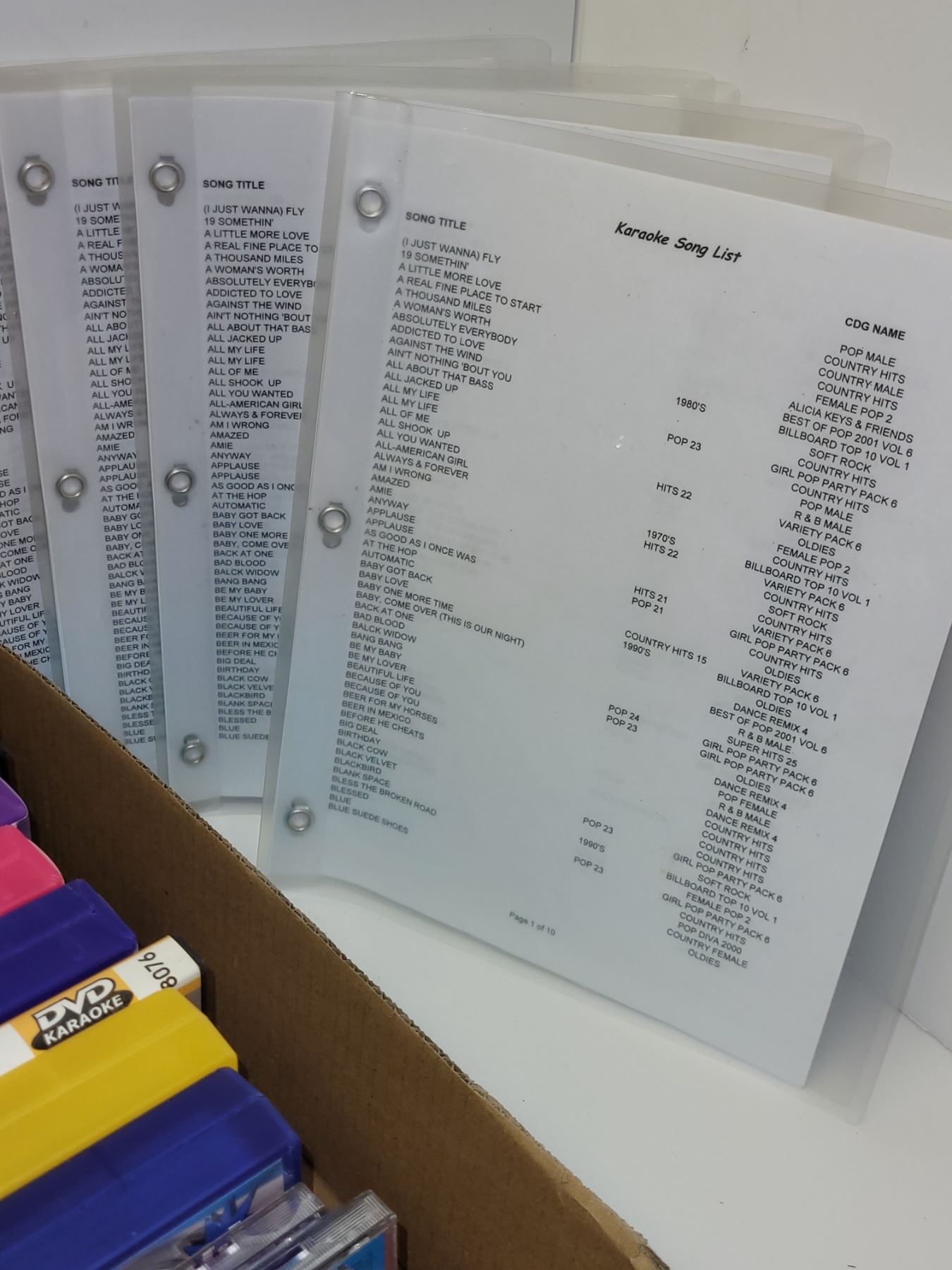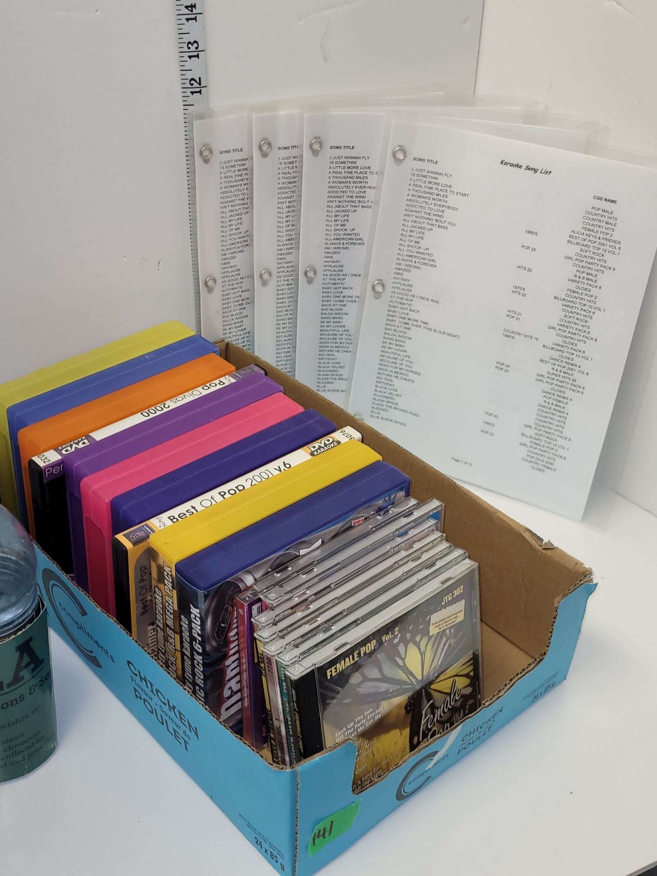 Flat of DVD Karoke DVDs With Printed Play List Song Choice