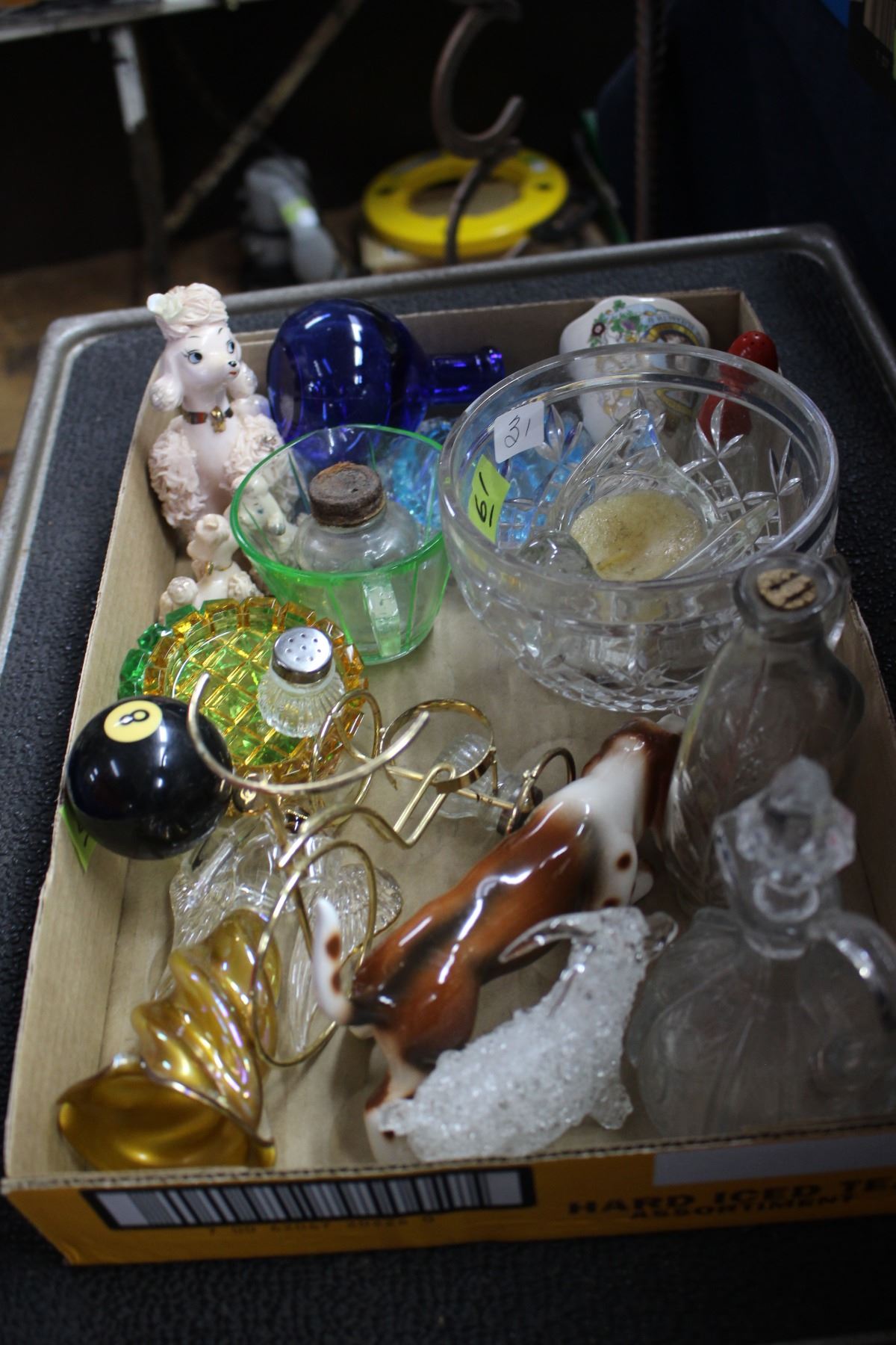Flat of Miscellaneous Glassware - Cruets, Ornaments