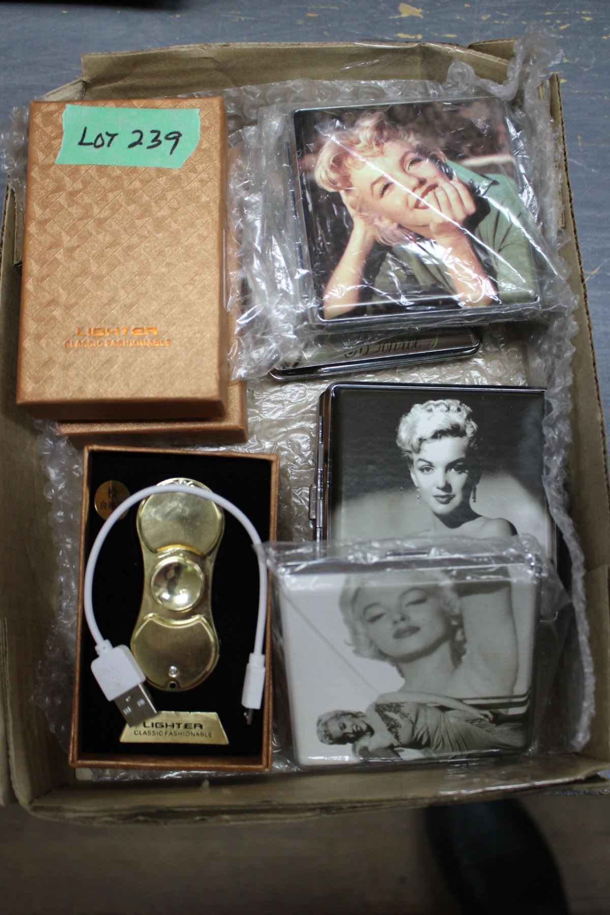 Flat with 6 Marilyn Monroe Cigarette Cases and 3 Flameless, Chargeable Lighters
