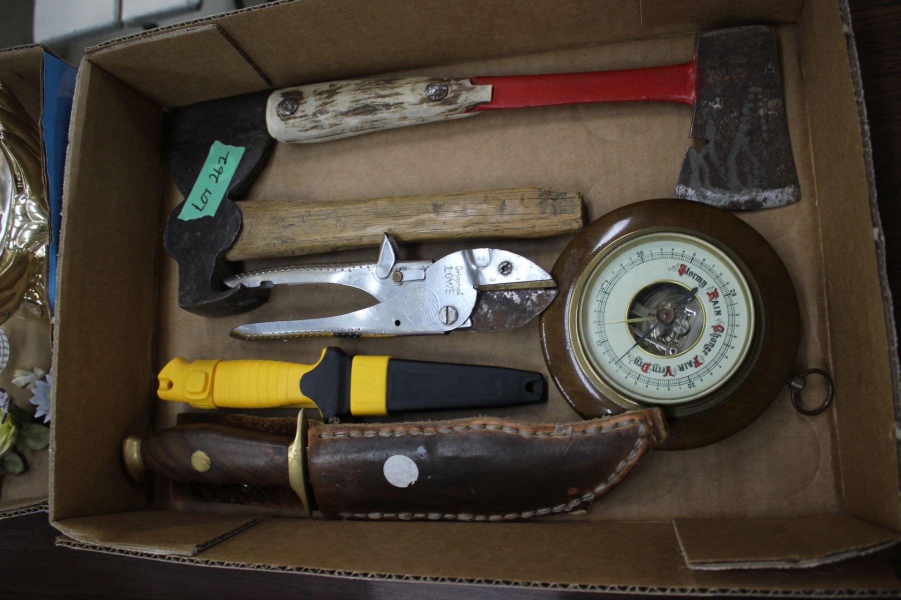 Flat with Knives, an Axe, a Hatchet, Metal Snips and a Barometer