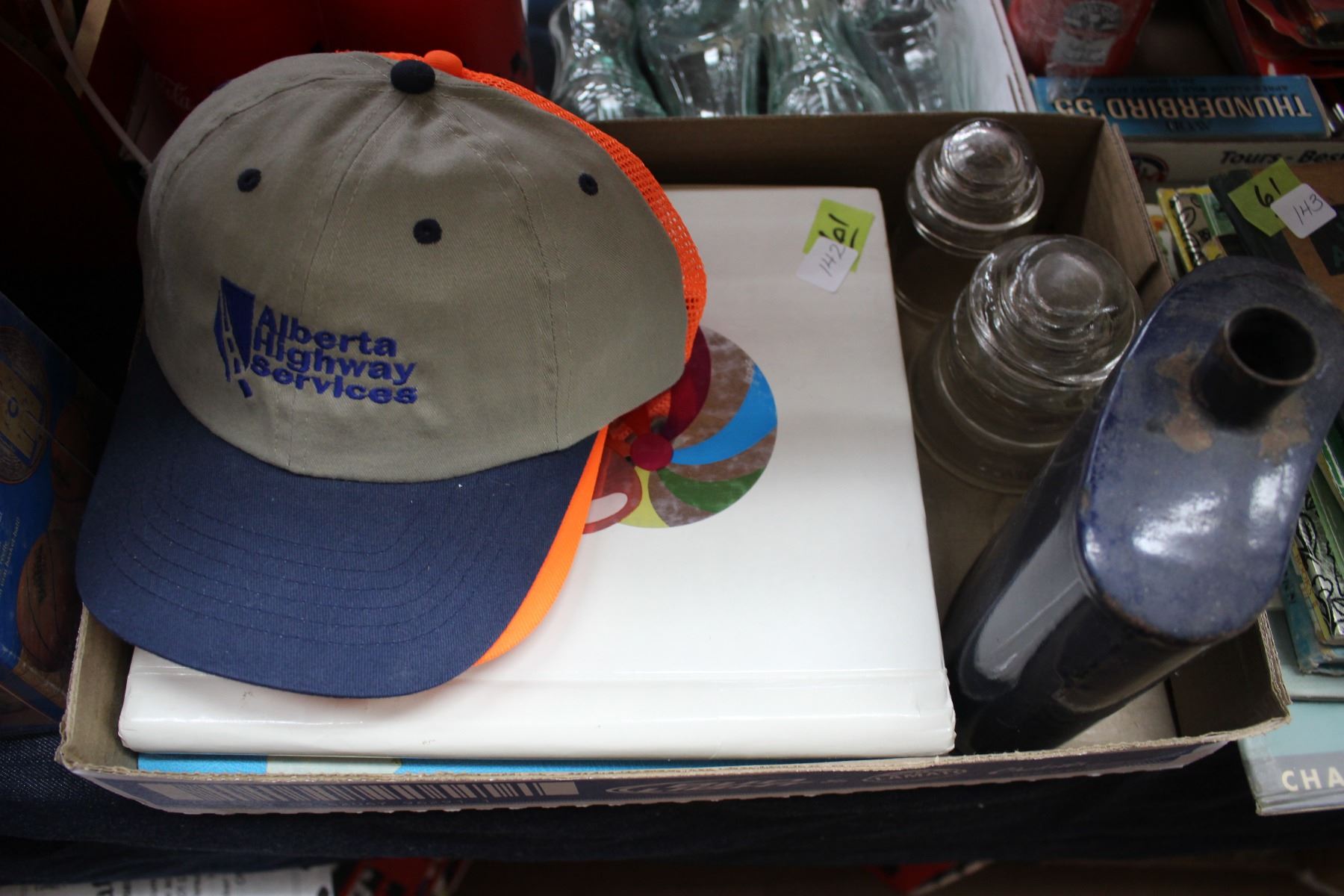 Flat with Metal Flask; 2 Albums of Oil Co. Logos & 3 Ball Caps
