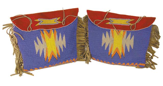 Various Ages, Very unusual pair of full beaded geometric design bags with fringe; backs restored/original beadwork. 11" x 16" each
